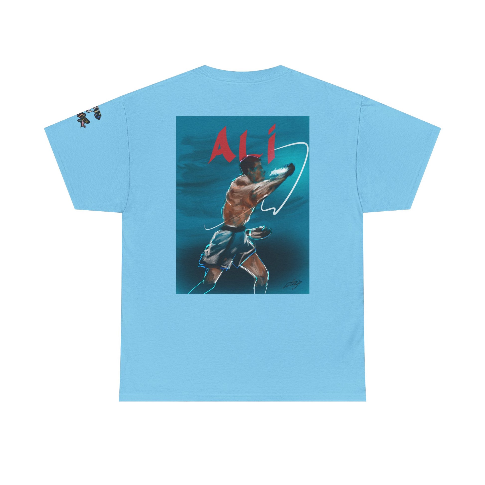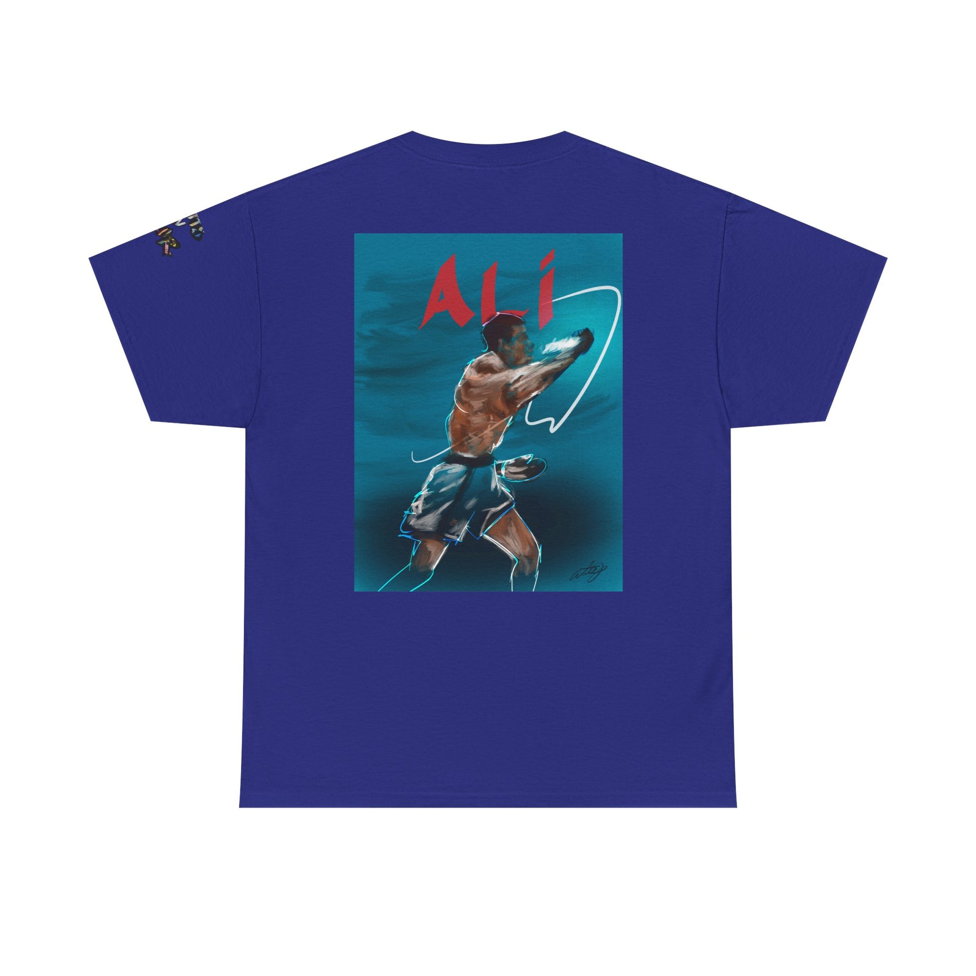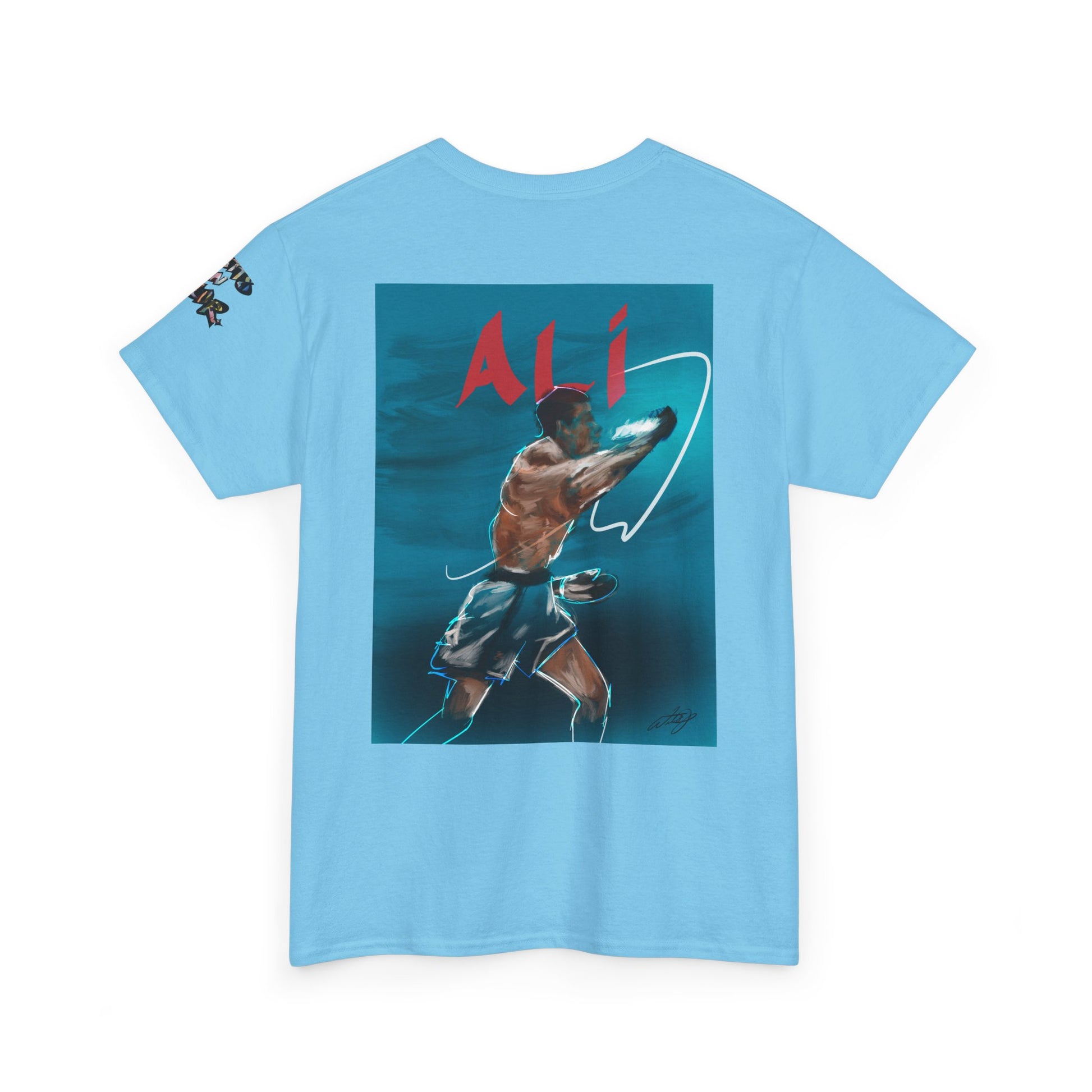 A classic unisex heavy cotton T-shirt featuring a design of Muhammad Ali training underwater. The shirt offers a comfy, relaxed fit with a crew neckline, making it suitable for any casual or semi-formal occasion. Perfect for fans of boxing, sports enthusiasts, and those who admire Muhammad Ali. Ideal for gifting on birthdays, Father's Day, sports events, and boxing-related celebrations.